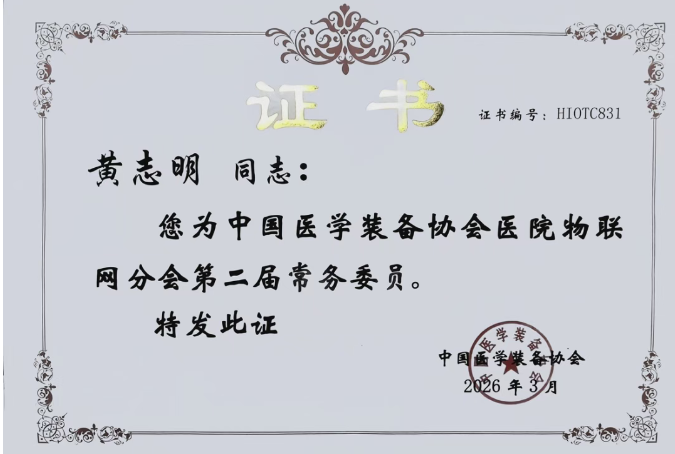 黄秘书长呼吁全行业携手共建,让标准化的开放的“物联路"取代私有的封闭的“物联墙”,使每家医院都能实实在在地享受到新质生产力带来的新兴技术红利,让整个行业由碎片化、烟囱化的应用阶段进化到互通、互译、互游的网络化新时代。本次展会,黄志明秘书长被评为中国医学装备协会医院物联网分会第二届常务委员。