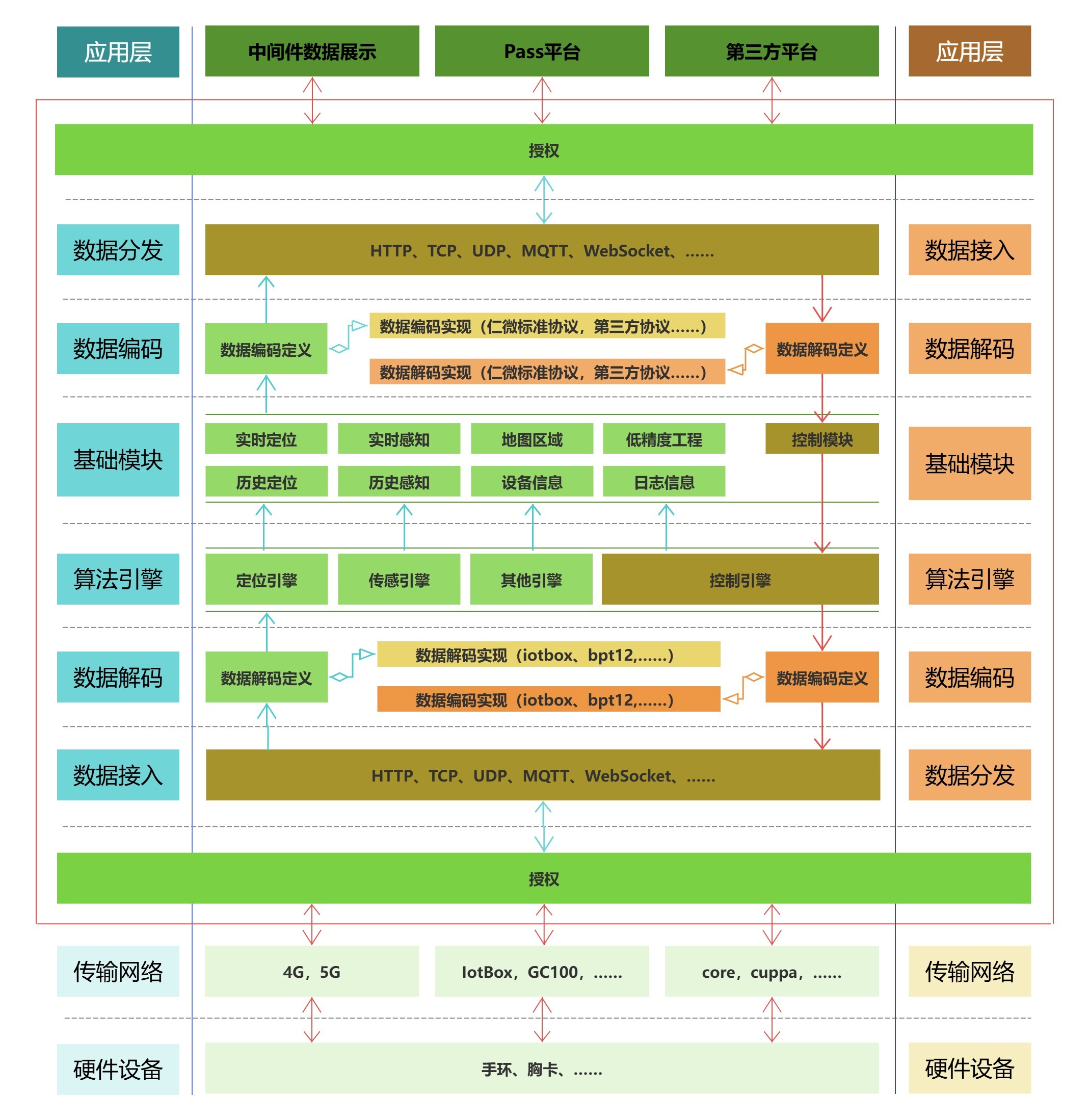 终端:支持将采集到的终端设备原始数据进行数据解析和数据格式编译,使其具有数字身份标签,以便应用层服务调取各类数据进行加工和使用。 数据类型包含:位置坐标、心率、体温、血氧、血压、记步、设备电压值、SOS告警值等多种传感数据类型。