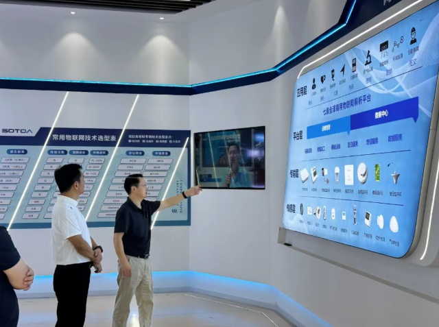 索塔联盟秘书长、上海仁微电子科技股份有限公司董事长黄志明热情接待考察团一行,并陪同参观联盟城市展厅及多个前沿技术应用场景。通过沉浸式体验,彭市长一行直观感受到短距离物联网技术在智能家居、数字社区、智慧医养、数字文体、智慧停车、智能安防、双碳经济等领域的强大赋能价值。
